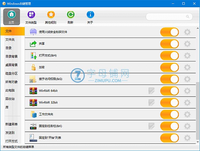 启用或禁用文件、文件夹、新建、发送到、打开方式、自定义文件格式等右键菜单项目